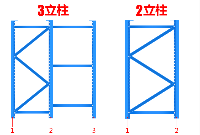 三立柱貨架,主要是為了放置重量大,面積大的貨物。三立柱貨架承載高、層板寬、加強(qiáng)筋多,因而儲(chǔ)存貨物種類更多。
