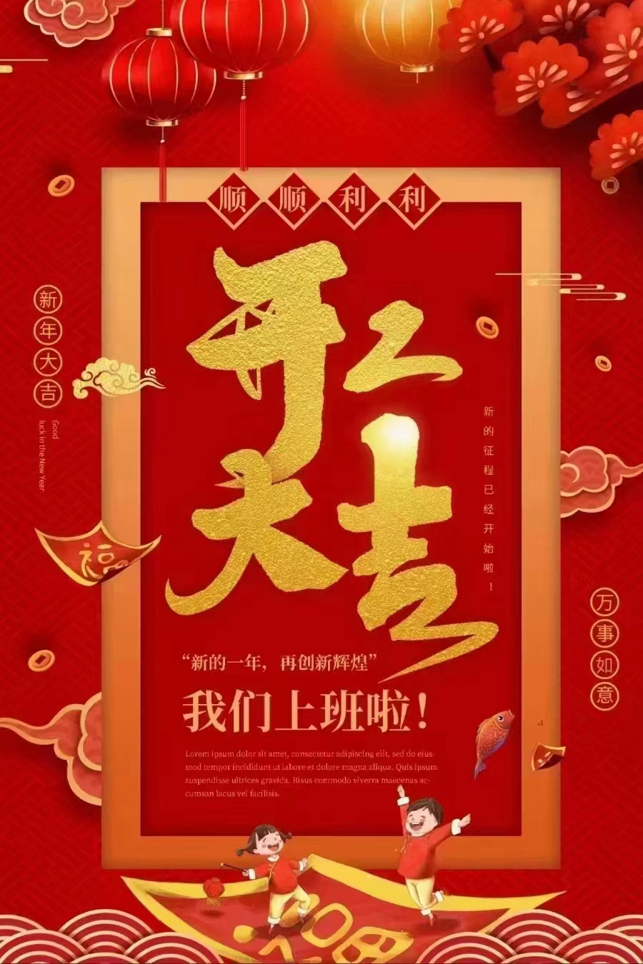 開工大吉,祝大家新的一年身體健康,生意興隆,財源廣進,心想事成,兔飛猛進。